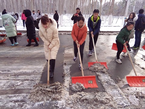 此次扫雪活动,不仅扫清了“马路杀手”,展示出了我系师生为美丽校园建设做出的努力,同时也体现了我系师生的向心力、凝聚力与合作力。