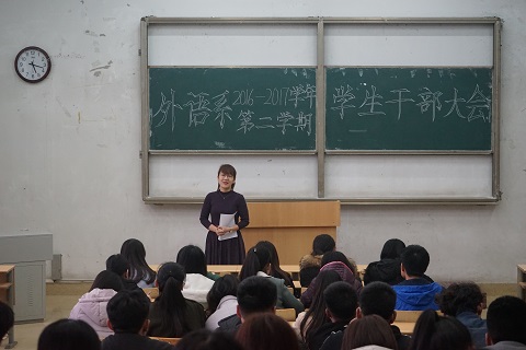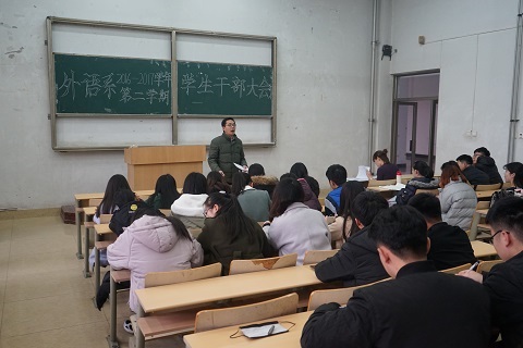 为了加强员工干部工作能力,强化员工干部的责任意识,2月19日,外语系于在1号教学楼107教室召开全体员工干部大会。外语系全体辅导员老师、各班班团及员工会干部参加此次会议。