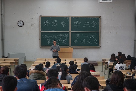 为了提高员工会成员的工作能力,增强自我教育、自我管理、自我服务的意识。2月28日,外语系于1号教学楼107教室举行“文明是希望”礼仪培训大会。外语系员工会全体成员参加本次大会,辅导员马盛楠指导此次活动的开展。