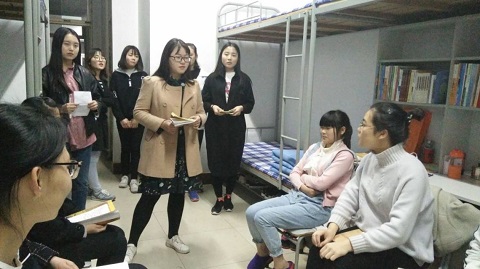 为营造宿舍文化氛围,提高我系英寝质量。3月16日晚,外语系联合人文学院学习部在2号、3号宿舍楼开展“寝室交流会”活动。辅导员马盛楠指导此次活动的进行。