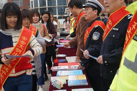 为进一步推动校园交通安全长效机制建设,普及交通安全法律法规。3月20日,外语系在二餐广场参加了“安全文明出行,共建平安校园”交通安全宣传教育活动周启动仪式。员工科科长卞尊营、辅导员马盛楠、刘浩天、2016级法语班全体员工以及2016级英语教育专科三班全体员工参加此次活动。