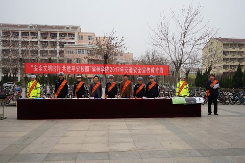 活动伊始,滨州市交警支队副支队长顾晓光、办公室主任毛军、宣传科科长王长征先后讲解了当前辖区的道路交通安全形势,呼吁广大学子出行一定要遵守交通规则,文明守法、平安出行。随后,同学们有序地观看了交通安全宣传册和宣传板,加深了交通规则的理解。