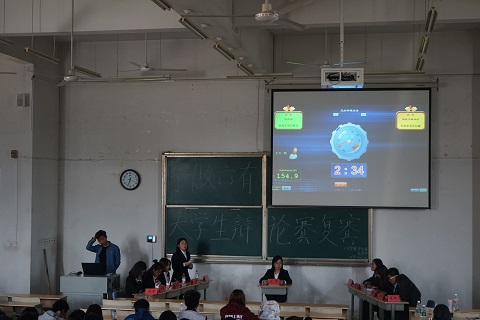 辩论赛开始,由此次辩论赛的主席宣布辩论赛规则。随后,辩论赛正式开始。由我系组成的正方与建筑工程学院组成的反方就“传统孝道是财富还是包袱”的辩题展开了激烈的辩论。双方辩手针锋相对、唇枪舌战、妙语连珠、互不相让。外语系代表气势长虹,符合逻辑的辩词令对方折服,将比赛推向高潮,现场掌声不断。最后,外语系击败建筑工程学院获得进入半决赛的资格。