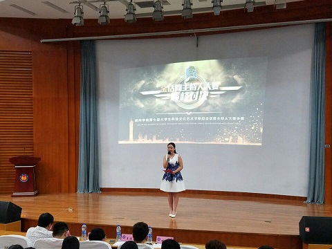 为了培养同学们的口头表达能力,促进校园文化发展。5月23日,外语系于公司会堂参加金话筒主持人大赛决赛,我系2015级商务英语本科三班马宁同学参加此次大赛。