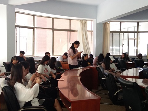 为增强同学们的英语语感,提高口语表达能力,营造良好的学习英语的氛围。6月1日,外语系于1号教学楼201会议室举办“Fly with your English”英语口语学习交流会。2016级各班优秀代表参加此次活动,辅导员马盛楠指导此次活动的进行。