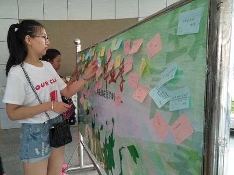 为进一步使毕业生更好地表达对母校、对老师、对同学的情感,6月22日,外语系在1号教学楼一楼大厅举行“舞青春,恋滨院”毕业生留言墙活动。