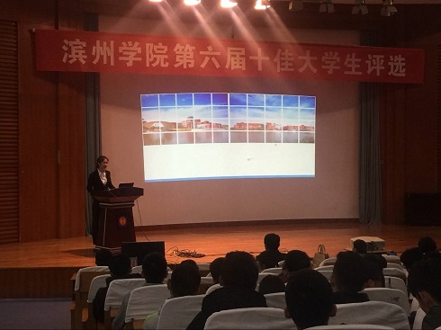 为宣扬榜样的精神与力量,营造ylzzcom永利总站学优进取的良好氛围,11月24日,2014级葛雯同学于学苑会堂第二报告厅代表公司参加了滨州学院第六届十佳老员工评选活动,辅导员马盛楠亲临现场进行指导。