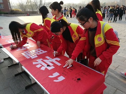 活动伊始,主持人详细介绍了此次活动的详细流程,并强调雷锋精神是中华民族的宝贵财富,作为当代老员工,不仅要做社会文明的领导者,更要做社会风气的规范者。随后,签横幅活动正式开始,员工会成员在桌子上铺开一张写着“学雷锋 我们在行动”的红色横幅。在各个班级的同学们有秩序的在横幅上签下自己的名字的同时,员工会成员不断向同学们介绍“雷锋精神”这个饱含深意的词语,并呼吁同学们在日常生活中践行雷锋精神,热心帮助他人。现场的同学们响应积极,现场气氛活跃。