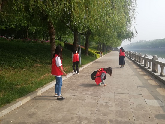 活动开始,同学们抵达滨城区新立河主题公园,在相关管理员的带领下,逐渐熟悉了工作内容。随后,工作人员将公司同学们分为两组,分别进行“道路清理”和“绿化保护”两方面的工作。由于在公共场所工作,清理道路的同学们在尽量不打扰行人的情况下,默默工作,但同学们内心热情似火,铆足干劲,本着“奉献,友爱,互助,进步”志愿服务精神,不怕脏不怕累,认真完成自己的任务。保护绿化的同学用手认真捡拾绿化带里的垃圾,同学们生怕伤到草木,认真且谨慎地做着服务,爱护每一棵需要发芽的小草,所有同学都专注于自己的工作。最后,所有参加活动的同学在公园桥上合影纪念。