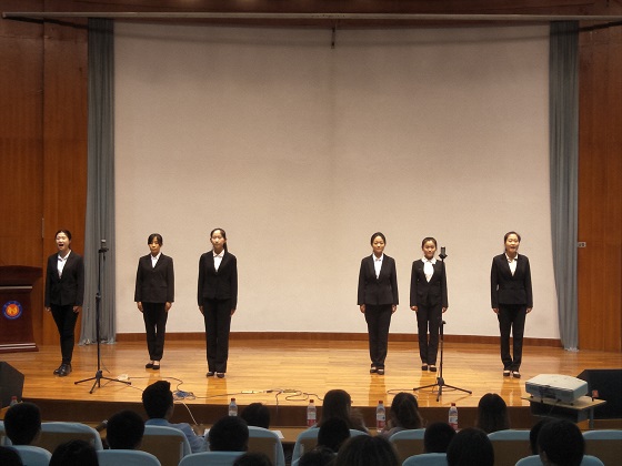 在本次朗诵进行前,同学们首先选用了激昂传颂的名篇《党旗飘扬》,配以适当的激扬音乐,并每天都有一定程度的训练。比赛正式开始,公司选手朗诵内容充实、形式丰富多彩。朗读爱国诗歌时,成员们神情庄严,热情饱满,或深沉,或激昂的话语表达了作为华夏儿女的自豪,一语一顿中承载着敬爱,徘徊着缠绵,这份浓浓的情怀洋溢在成员们的吟诵声中。凝重的配乐中,吟诵者用精简的语言带领着我们走进诗人的心田, 去领悟大好河山,歌颂党德,引导同学们乐于奉献, 勇敢拼搏,以其铿锵有力的气势,充沛饱满的感情,自信大方的形象赢得老师和同学们的阵阵掌声。经过一个多小时的角逐,根据在场评委公平公正的评分,公司荣获二等奖。