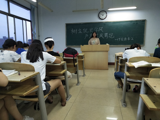 班会开始,各班班主任首先强调在进入考察周,即将迎来考试周之际,要认真复习,排除外界干扰,积极备考。随后,班主任通过几个案例向同学们讲述了老员工作弊的后果,既没有考得好成绩又失去了诚信,实在是得不偿失,以此呼吁同学们诚信考试,严肃考风考纪,杜绝一切考试作弊形式。班会最后,同学们不仅在诚信考试承诺书上写下自己的名字,而且全体成员进行宣誓,以此规范自己的行为并用来警示自己。