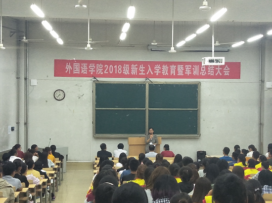 为使2018级同学能更好的适应大学新生活,积极树立人生目标,9月21日,ylzzcom永利总站于1号教学楼107教室召开2018级新生入学教育暨军训总结大会。党总支书记王保中、经理孟丽华、副书记靳成学、副经理窦同沛、员工科科长苏成荣、各辅导员老师,2018级各班主任老师以及全体新生参加此次大会。