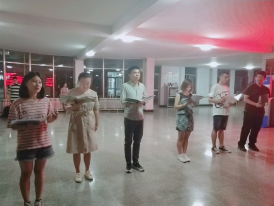 节目审核开始前,表演人员就已提前到达现场进行准备工作。一首《不说再见》,诉说了毕业生的大学时光,转瞬之间,从入学时的“初次相见,请多关照”,再到如今的“有缘再聚,勿离勿忘”,数年光阴,才刚刚熟悉,却又要说再见,毕业班的大合唱拾起了我们的回忆,为员工时代的生活画上圆满的句号,一首《最初的梦想》,让我们感受到在遭遇到困难、挫折的时候,只要坚持自己“最初的梦想”,回想当初立志实现梦想的那一份努力,就决不会轻言放弃。
