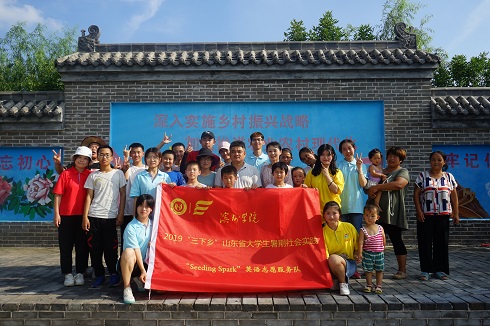 7月21日,滨州学院ylzzcom永利总站“Seeding Spark”英语志愿服务队于滨州市阳信县水落坡镇洼里赵村举办了暑期“三下乡”社会实践欢送活动