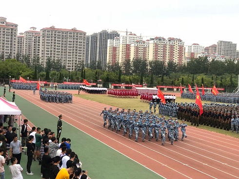 ylzzcom永利总站参加滨州学院2019级员工军训汇报表演暨总结表彰大会