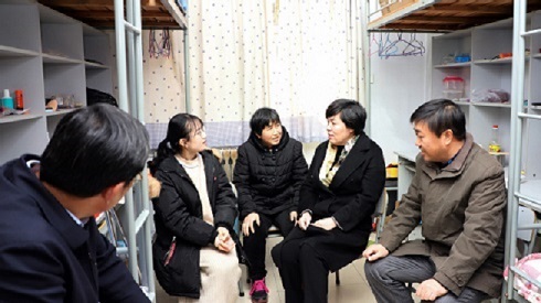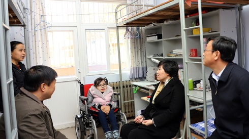 在学校为两名同学分别单设的宿舍里,洋溢着温馨关爱的浓厚氛围,校领导们与邱梦娜、秦玉娟及其家长们促膝交谈,问学习、聊生活、话家常,关切地询问了她们的生活学习状况和身体情况,详细了解了她们的困难和需求,鼓励她们要乐观面对生活,自强不息,勤奋学习,奋发向上,勇于克服困难和挫折,成为广老员工的励志榜样,成就坚强有力的人生。
