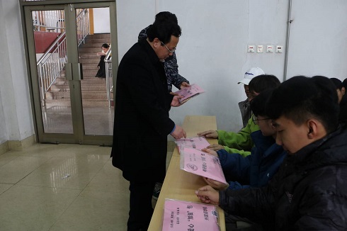 会议开始前,学院为231名考研学子发放了精心准备的暖心考试包——其中包括黑色签字笔、2B铅笔、橡皮、胶棒、小刀等考试用品以及祝福贺卡、暖贴等。随后,党总支书记王保中老师结合当前新冠肺炎疫情和就业形势,鼓励同学们积极面对,帮助员工树立考研必胜信心;苏成荣老师向同学们重点传达了研究生考前和考试期间注意事项;张瑾老师结合个人成功考研经验,向同学们传授考试答题技巧。谆谆教诲带着殷切期盼,会上领导、老师纷纷向同学们表达了祝福,希望同学们把握好学院提供的考研平台,抓住机遇,成功上岸,金榜题名!