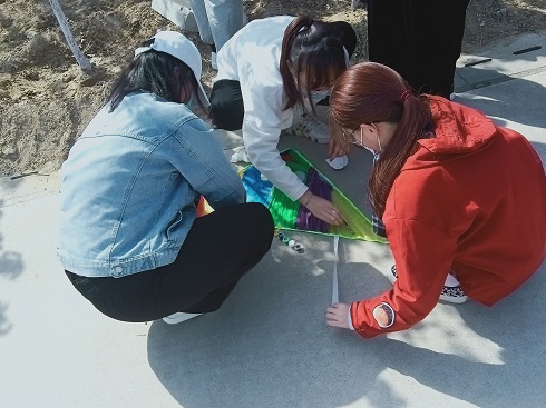 活动伊始,主持人向同学们简单介绍活动流程,放风筝注意事项等。随后,各小组领取活动方准备的空白风筝和原料或自行准备绘画工具。活动要求同学们在规定时间内完成风筝绘制。制作过程中,同学们纷纷展示出自己的绘画功底,他们或画上动漫人物;或写上梦想与期望;或集齐全班人的签名,形态各异,美轮美奂。制作完成后,各小组在领取风筝线后,由小组成员共同放飞属于自己的风筝。同学们在操场上牵线奔跑,让风筝随风逐云,跟随着温暖的春风越飞越高,越飞越远。每个风筝上书写一句口号和目标,在和煦的春风里,放飞希望。活动最后,主持人进行总结,并组织合影留念。