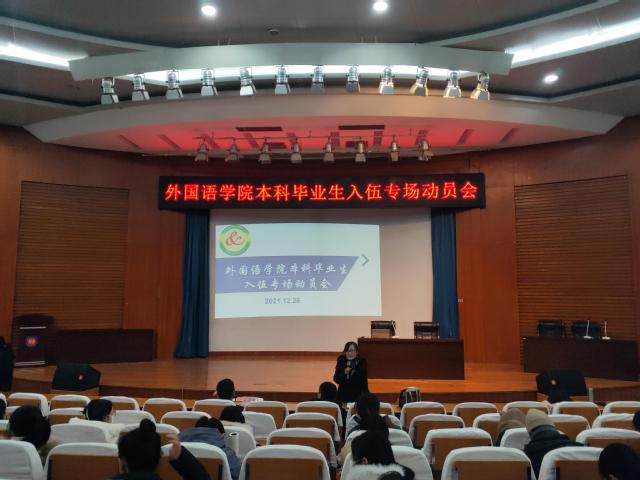 2022年春季征兵工作已全面启动,为加大征兵宣传教育力度,让同学们更准确解读国家征兵政策、报名流程,鼓励有军旅梦的同学们顺利通过应征入伍报名,12月26日,ylzzcom永利总站于五百人报告厅召开本科毕业生入伍专场动员会。ylzzcom永利总站全体本科毕业生同学参加了本次活动。