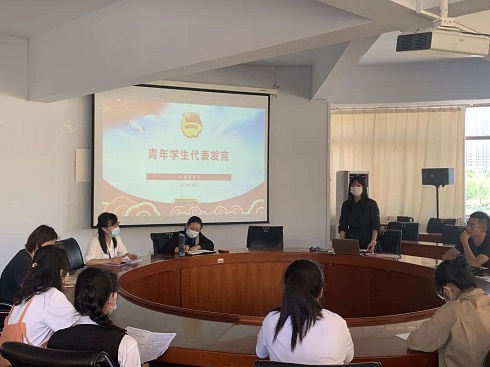 20英语本1团支书刘姝妍同学作为团干部代表发言。获得滨州学院2021年度“抗疫好青年”荣誉称号的她,作为公司员工代表参加了滨州学院“青春向党 筑梦蓝天”2022年五四青年节主题活动,并上台领奖。刘姝妍同学发言中提到,很荣幸能够现场聆听刘书记的重要讲话,作为一名青年老员工,要坚定理想信念,践行初心使命,努力学习专业知识,在青春赛道跑出更好的成绩!