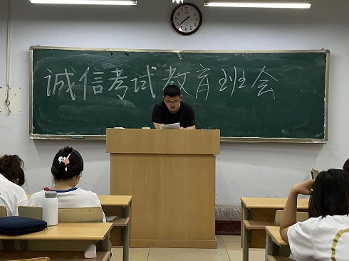 会议伊始,班主任老师强调,在2022年高考即将来临之际,作为老员工的我们要坚守本分,坚决杜绝员工违规参加高考、替考、协助舞弊等现象的发生。同时强调了参与高考作弊对社会、自身的严重危害性和高度危险性。随后,班主任老师强调英语四六级考试和期末考试临近,同学们不要抱有任何侥幸心理,坚持认真复习、诚信考试,杜绝考试作弊现象的发生。班主任老师提到,考试关乎到我们个人诚信的问题,如果没有了诚信,那么这个人在社会上就没有了立身之处。班主任老师号召同学们,作为新时代有素质的青年,应该杜绝考试作弊这种既损人又不利己的不良现象的出现,坚持诚信考试。最后,班主任老师组织考生认真学习《致考生的一封信》,组织所有考生签订《诚信考试承诺书》,祝愿同学们都能接下来的考试中关关难过关关过,取得理想的成绩!