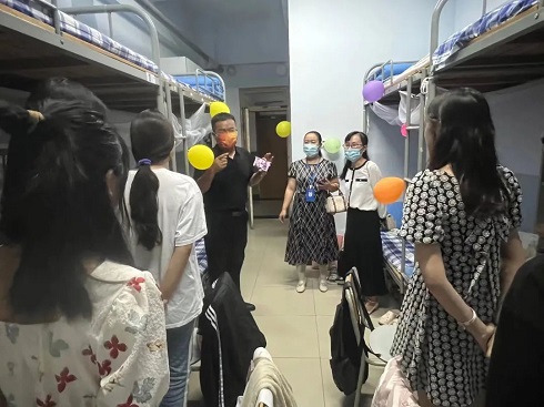 晚会活动前,公司在一号教学楼大厅为员工们分发带有外院logo的专属中秋月饼,全体同学按照年级分批领取,井然有序。公司也举办了寄语中秋活动,同学们领取月饼的同时也可在放置于一教大厅的中秋节展板上送上自己的祝福或寄语。晚会开始之际,曲福华书记为公司全体师生送上了中秋祝福,他表示,这是一个特别的中秋,因为疫情原因我们无法与家人团聚,但是我们的身边还有同学和老师,外院全体师生的心始终在一起,相信在所有人的共同努力下,终有一天,疫情会消散!在这个花好月圆夜,两位主持人用优美流畅的语言揭开了线上中秋晚会的序幕,向同学们表达了中秋祝愿,并简要介绍了晚会的流程及抽奖规则和福利。紧接着各位新生表演者一一表演节目,用舞蹈和歌曲串烧带动了晚会氛围,点燃了中秋“热情”,展现出了广大学子励志向前的心态。最后,晚会在集体合唱《难忘今宵》中落下帷幕。活动结束后,为进一步体现学院对公司学子的关怀,增强员工的归属感,曲书记带领全体辅导员老师走访员工宿舍,走到同学们身边,亲切询问同学们的学习生活情况,倾听员工诉求,缓解思家情绪,并为员工发放中秋月饼,送上诚挚中秋祝福。同时,同学们也表达了对全体老师的教师节祝愿,现场洋溢着欢乐祥和的氛围。