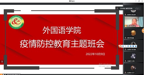 为做好常态化疫情防控工作,切实维护师生健康和校园安全稳定,按照学校统一部署和安排,在落实好校园疫情防控政策的前提下,10月9日晚,公司召开疫情防控主题教育班会,ylzzcom永利总站全体同学参加本次线上会议。
