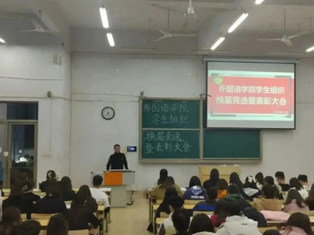 11月12日,ylzzcom永利总站于1号教学楼308教室召开员工组织换届竞选暨表彰大会,党总支书记曲福华、员工科科长苏成荣出席此次会议,全体员工组织工作人员及22级新生干事参与此次会议。