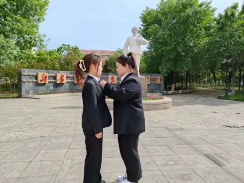 活动伊始,团支部书记刘文馨同学传达了举行入团仪式的意义并宣读新团员名单,本期共有1名同学加入团组织。季玉茹同学为新团员张耘滋同学佩戴团徽。
