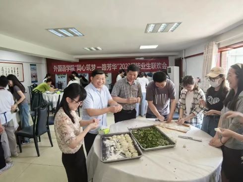饺子不仅象征着团圆,也是离别时相送的最好祝愿,现场老师和同学们相互配合,捋起衣袖,和面、擀皮、包饺子,欢声笑语、暖意融融。