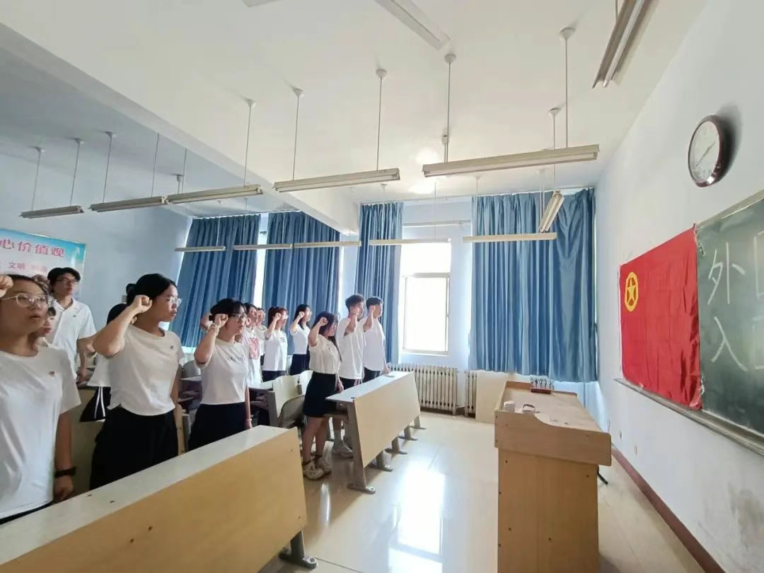 最后,各位新团员在团旗下庄严宣誓。他们声音洪亮、语气坚定,表达了对团组织的无限向往和对社会主义事业的承诺。